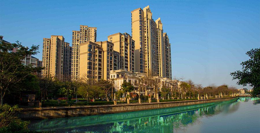 怡翠宏璟項目是能興集團首次與境外資本成功合作開發的高端豪宅項目。項目位于佛山市禪城區亞藝湖成熟豪宅板塊,毗鄰季華路與南海大道雙城市中軸線,占據季華中心商務區核心地段。項目占地面積6.7萬平方米,總建筑面積22萬平方米,園林綠化面積約4.5萬平方米,綠化率高達67%,建筑密度僅19%。怡翠宏璟項目產品線豐富,包括90~170㎡高層舒適洋房、200㎡高層大平層樓王及24席親水護城別墅 等多層次產品面積段。
